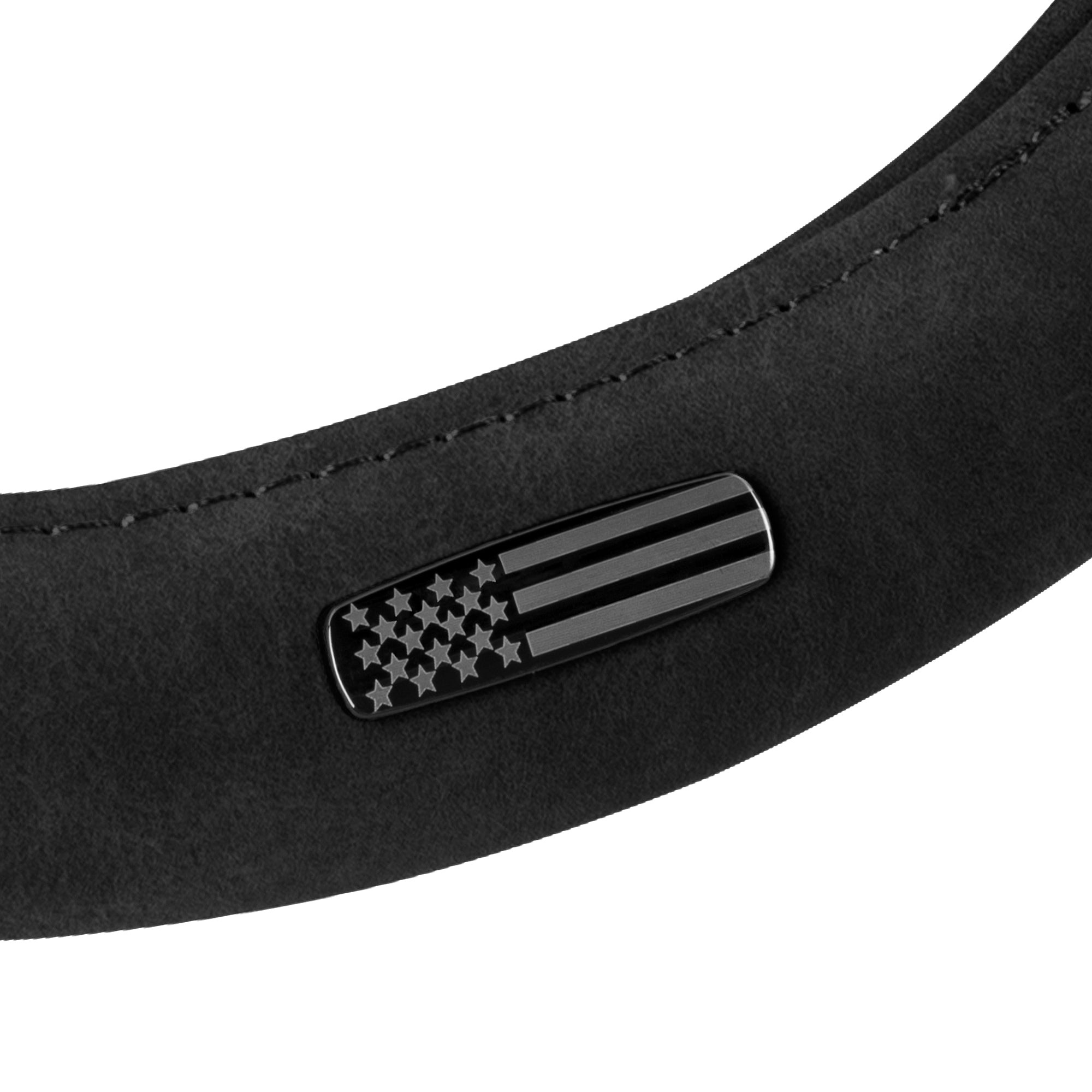 Upgrade your driving experience with the Cat® Honor Line Flux Leather Steering Wheel Cover, designed for drivers who want premium comfort, rugged durability, and elevated style. Crafted from advanced Flux Leather, this soft-touch leatherette offers the upscale look and feel of leather while delivering exceptional resistance to wear, cracking, and fading. A sleek black metal US Black Flag emblem sits at the bottom for a clean, modern, patriotic detail that complements any interior.