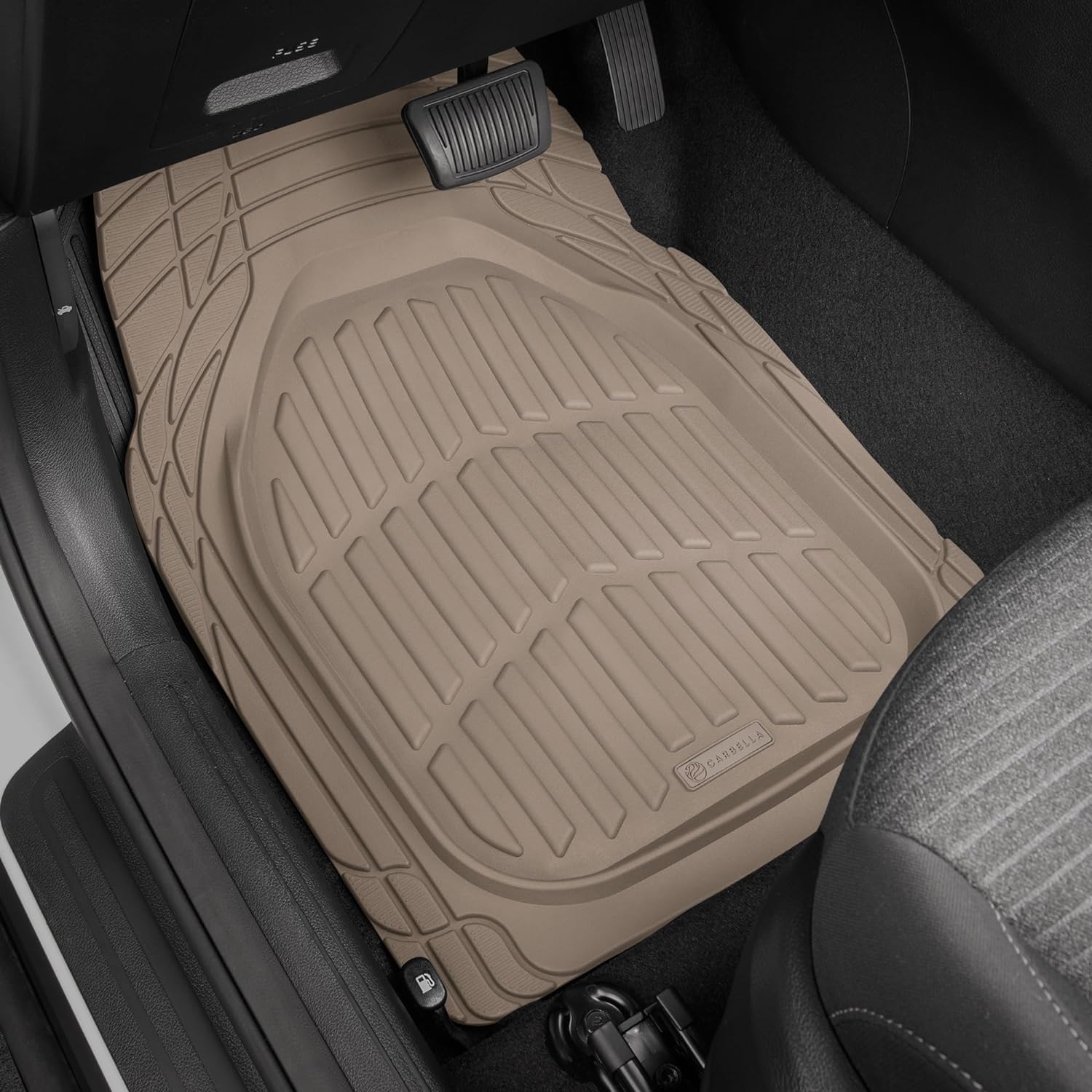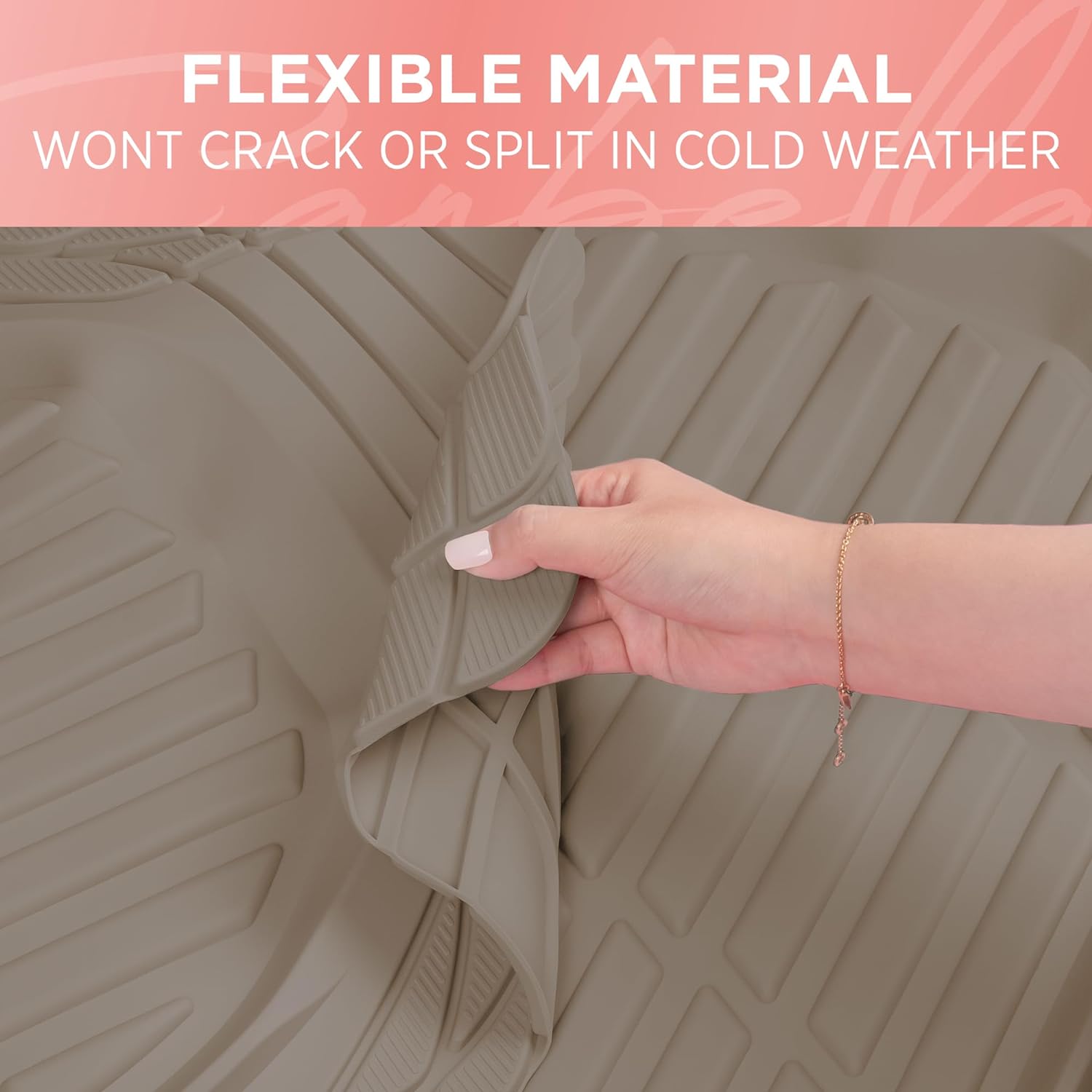 Car Floor Mats - FlexTough Deep Dish Rubber All Weather Protection for Cars SUV Trucks Beige Automotive Accessories