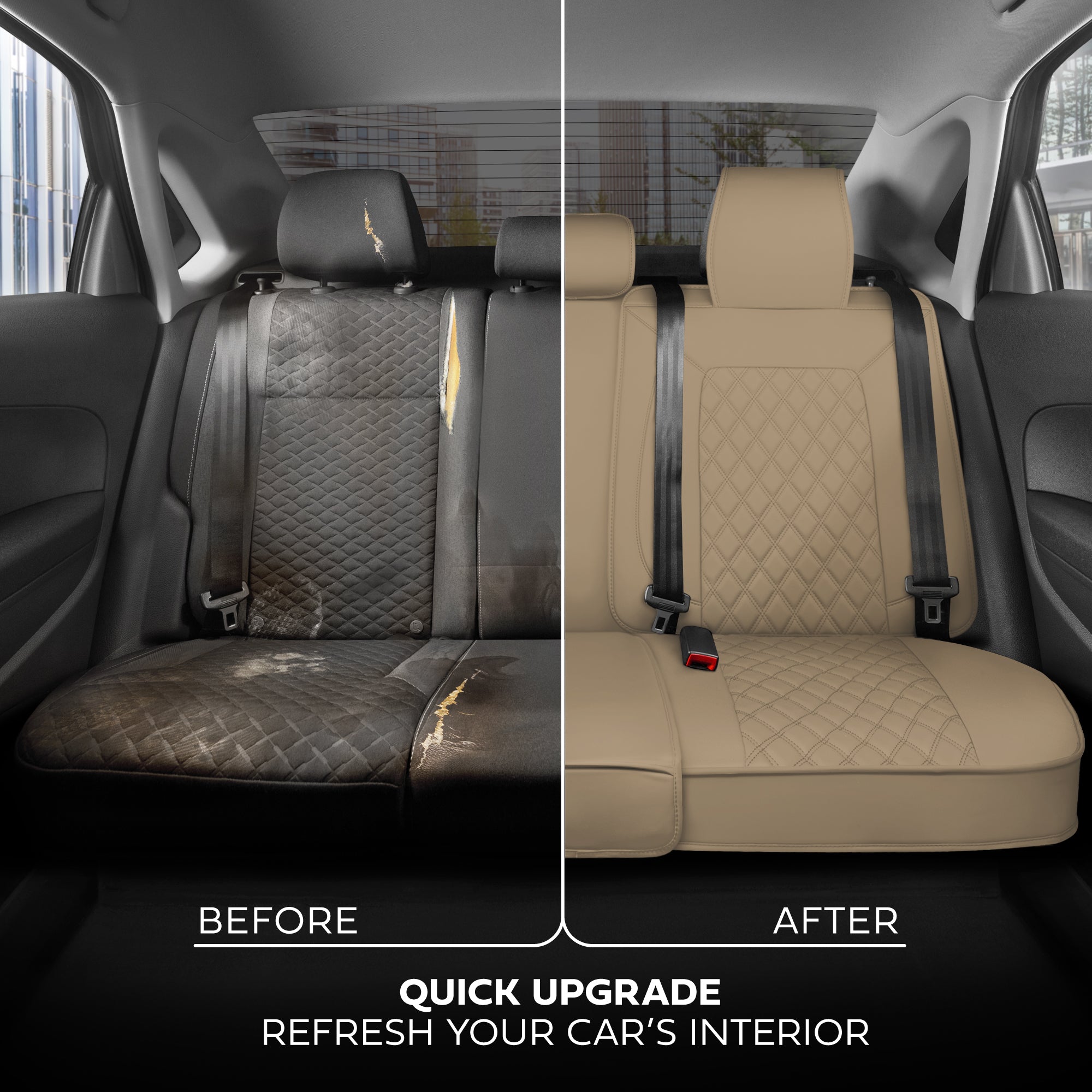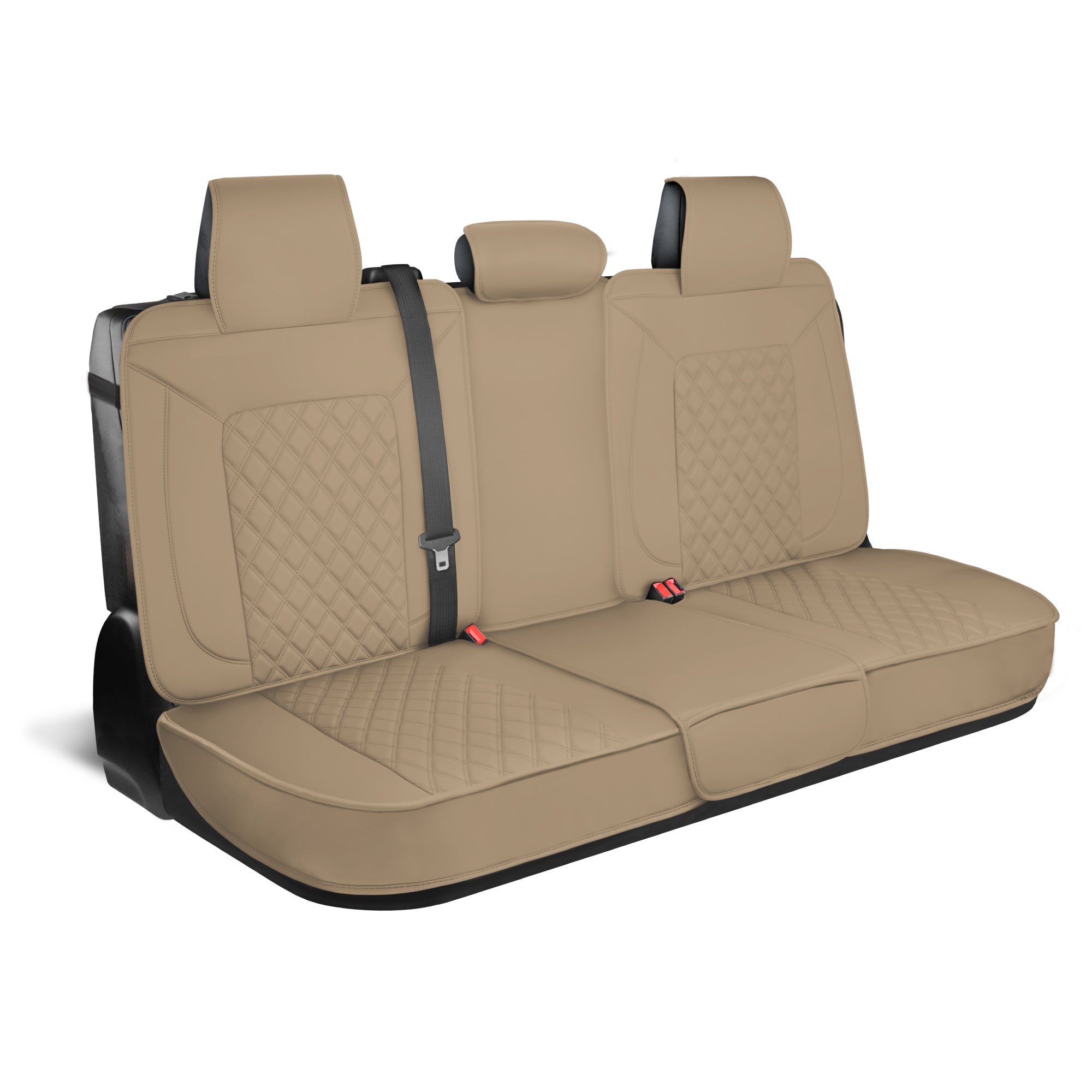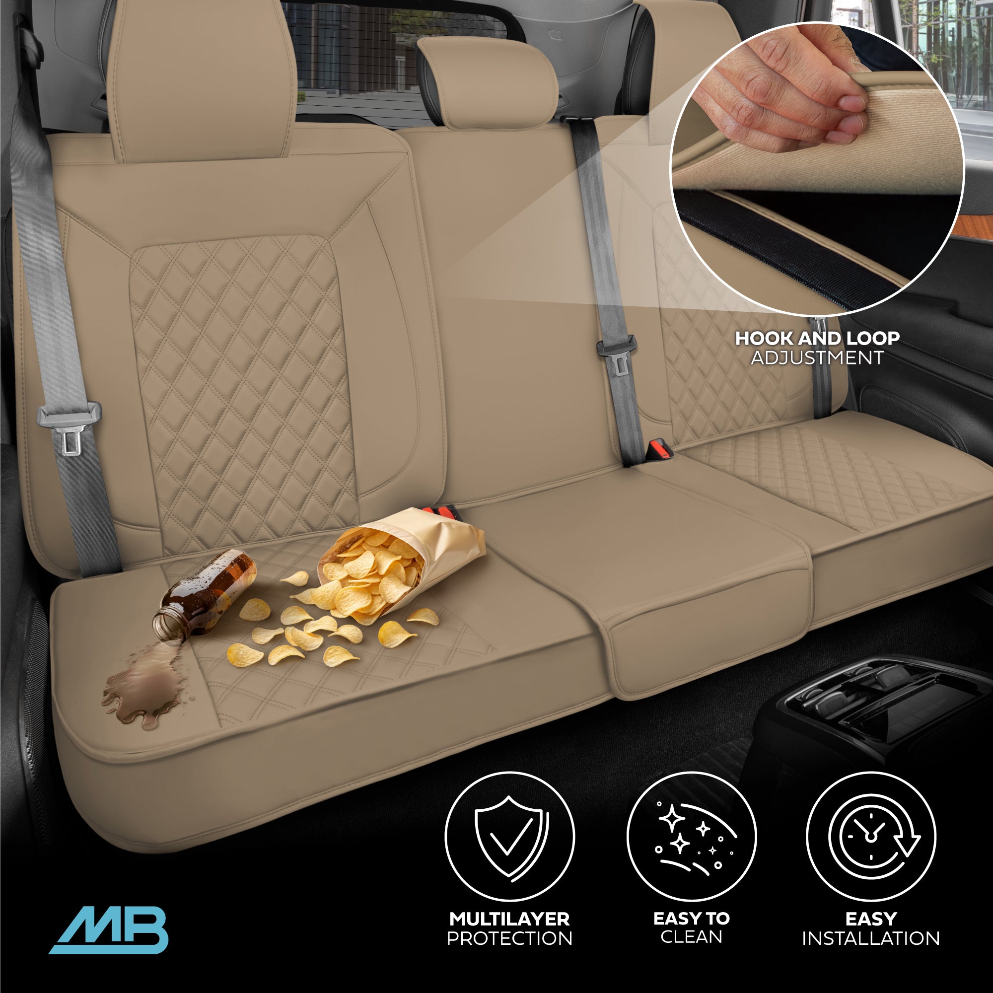MotorBox Premium Napa Leather Rear Seat Cover – Semi Universal Fit for Most Cars, Truck & SUV – Beige Back Seat Protector – Anti-Slip, Durable Bench Cover – Easy Install, Luxury Car Interior Upgrade